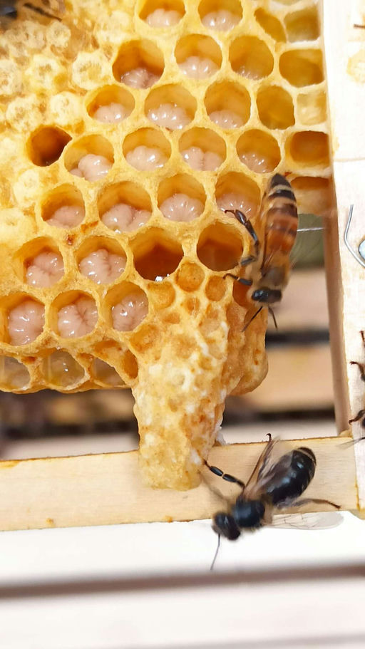 Der Mai ist der Monat der Schwärme. Das Bienenvolk ist groß und stark genug und möchte sich teilen, um sich zu vermehren. Die Bienen pflegen einige der Larven mit Gelee Royale, wodurch Bienenköniginne...