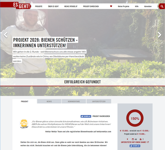 Über die Bedeutung der Bienen für uns alle muss wohl kaum noch etwas gesagt werden – ebenso wenig über ihren Rückgang und das Bienensterben. Auf www.crowdfunding.at sind uns ökologische Projekte, die eine nachhaltige Veränderung für Österreich bringen, ein besonderes Anliegen. Am Projekt 2028 hat unsere Jury begeistert, dass hier sehr pragmatisch an der Wurzel des Themas gewirkt wird: durch tatkräftige Unterstützung neuer Imkerinnen und Imker in Österreich. Damit das funktioniert, bedarf es einer einwandfreien Logistik, viel Einsatzes – und natürlich finanzieller Mittel. Wir freuen uns, dass unsere Funding-Unterstützer mit solcher Leidenschaft gegeben haben und damit den Erfolg des Projekts mittragen.