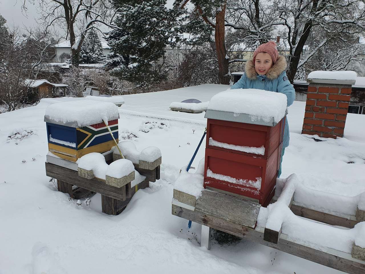 Wintereinbruch am Bienenstand. Es ist Zeit, die Beuten fit für die neue Saison zu machen. Neue Beuten versehen wir mit einem zweifachen Schutzanstrich; die verwendeten Farben sind natürlich unbedenkli...