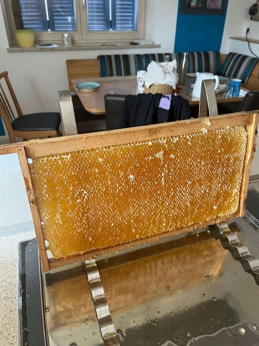 Ende Mai/Anfang Juni konnten wir ernten. Trotz des wechselhaften und teils sehr nassen Wetters sind wir mit der Ernte sehr zufrieden. Anfang Juni hielt sich der Schwarmtrieb in Grenzen, nun aber wolle...