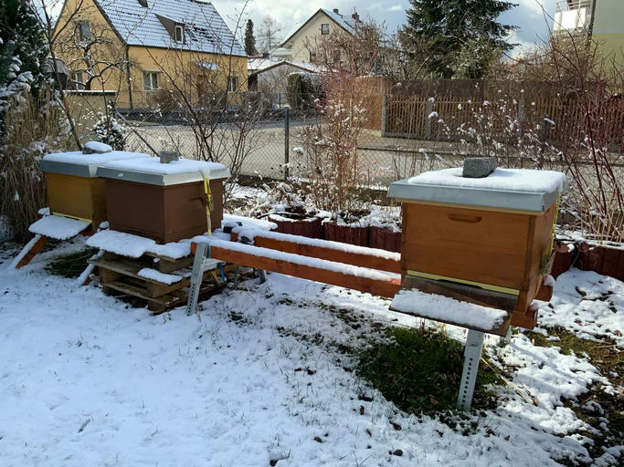 Anfang Dezember, Schneefall in München und kein Ende in Sicht. Mit einer 50 cm dicken Schneedecke bekommen wir eine wunderschöne Schneelandschaft. Unsere Bienen stört dies in keiner Weise, die Schneed...