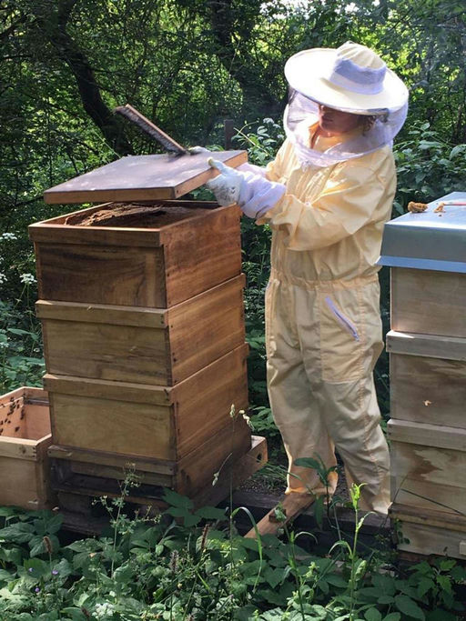 Zum Imkern gehört natürlich auch das Gestochenwerden. Im Vergleich zu Wespe, Hornisse oder Hummel ist das Gift der Biene am stärksten. Tja, und wenn da regelmäßig so ein großes Etwas die Ruhe im Stock...
