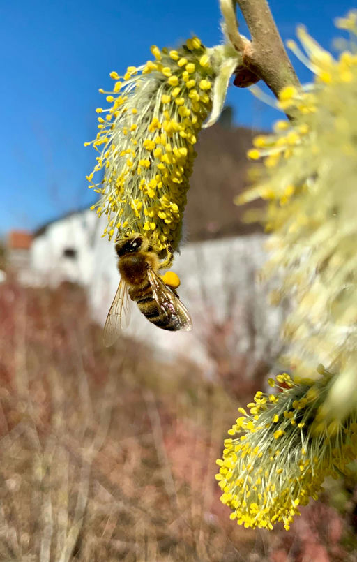Januar, mittlerweile wieder schneefrei. Ende Januar sind unsere Bienen schon wieder unterwegs und sammeln Pollen von der Haselnuss. Polleneintrag bedeutet gleichzeitig, dass die Königin wieder in der ...