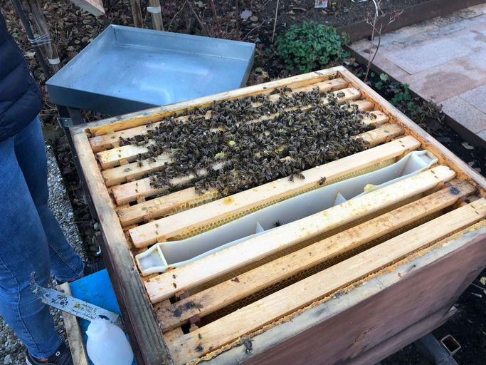 Nach der Behandlung im Dezember ist Ruhe eingekehrt. An den warmen Tagen fliegen die Bienen immer wieder aus, während sie an den kalten Tagen brav zuhause bleiben. Der Futtervorrat im Dezember war noc...