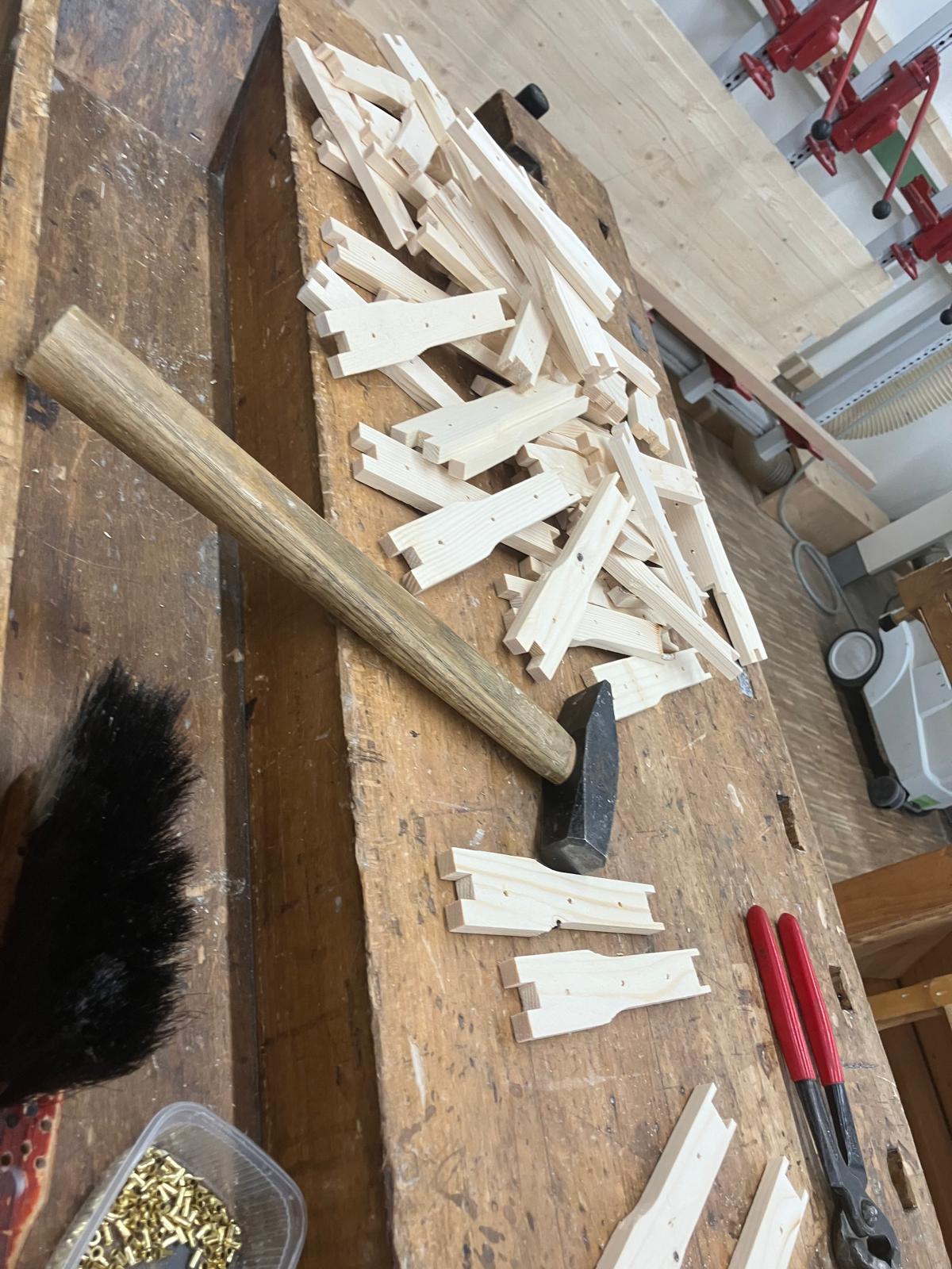Heute habe ich die Rähmchen für die 4 Zargen meiner Beute gebaut. Es ging relativ gut, sobald ich den Dreh raus hatte. Doch manchmal hat mich der Draht gestupft, was nicht immer so fein war.