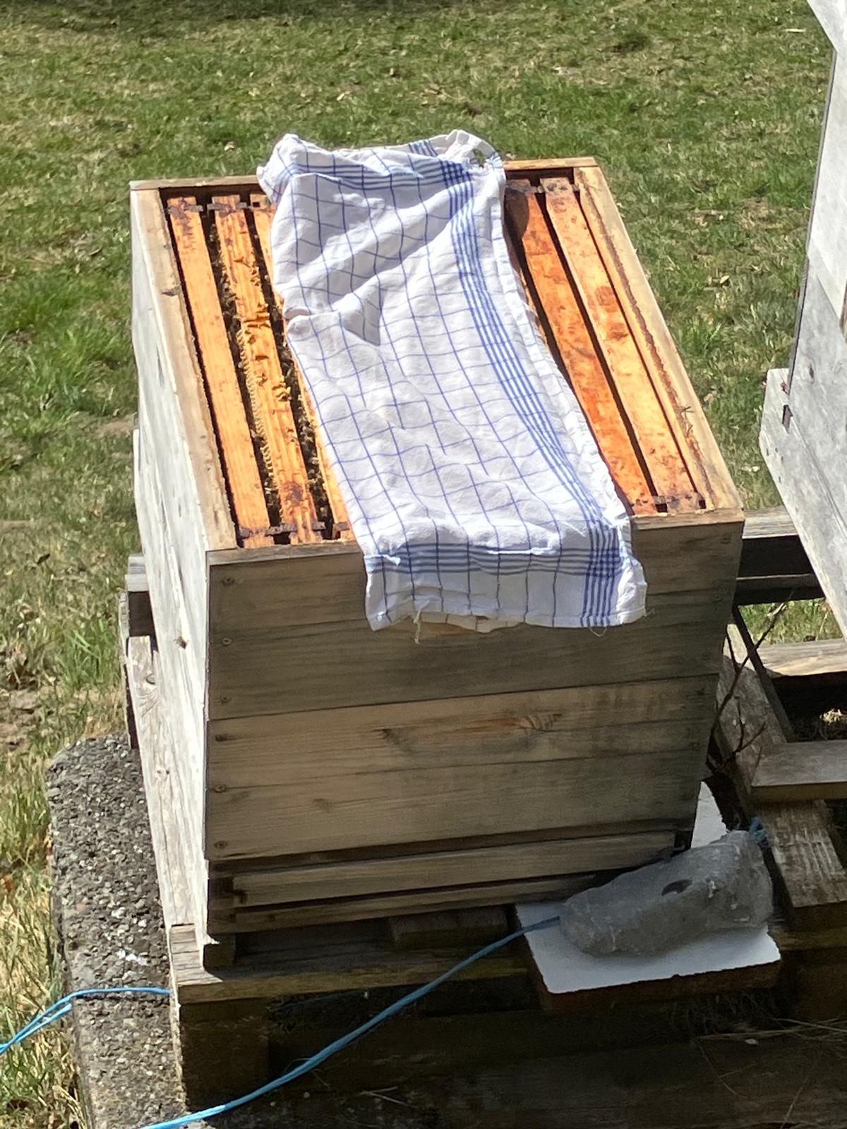 Damit unsere fleißigen Helferlein nicht verhungern, ist es dringend notwendig, ihnen etwas Futter zu geben. Die "älteren" Stöcke bekommen selbst gemachtes Zuckerwasser, während das "frische" Volk eine...