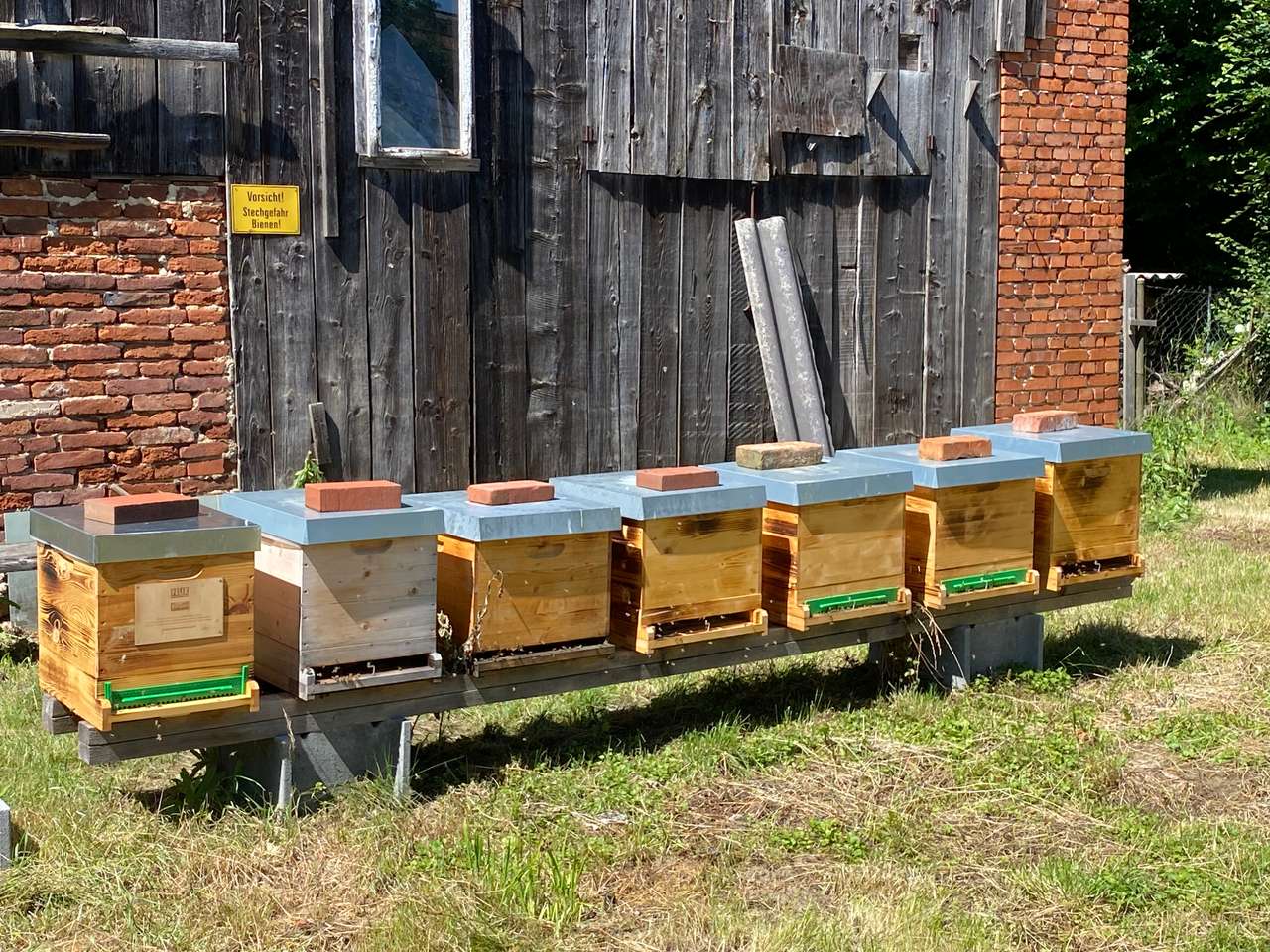 Die Beute ist gestrichen, die Mittelwände sind eingelötet und die Plakette ist montiert. Eigentlich ist alles bereit für den Einzug der Bienen. Aufgrund des regnerischen Frühlings und der kalten Tempe...