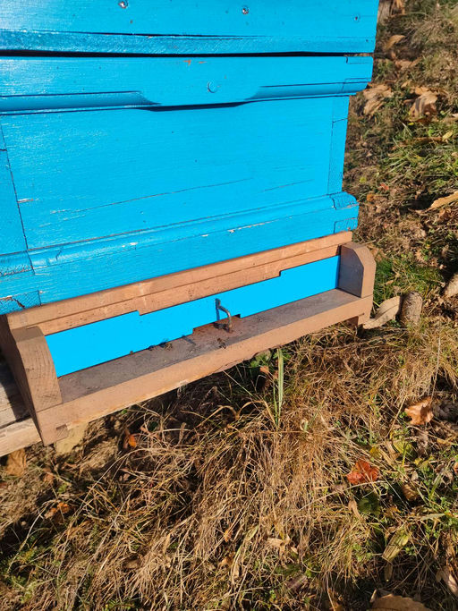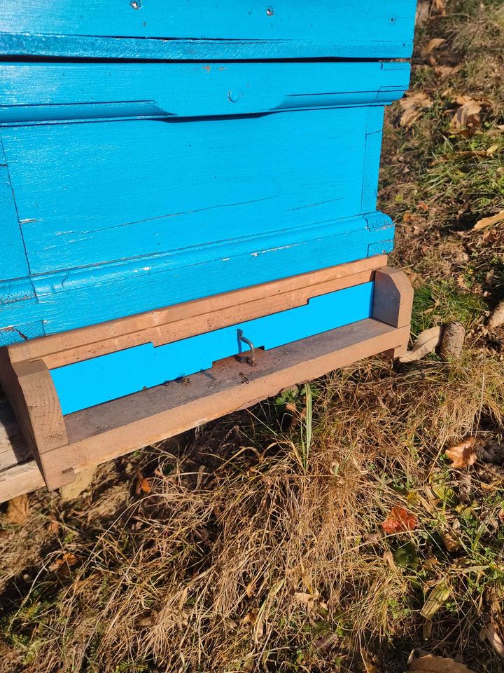 Endlich ist es Herbst geworden! Bei diesen milden Temperaturen sind unsere Bienen noch fleißig und sammeln den letzten Nektar und Pollen dieses Jahres. Trotzdem haben wir das Flugloch schon eingeengt....