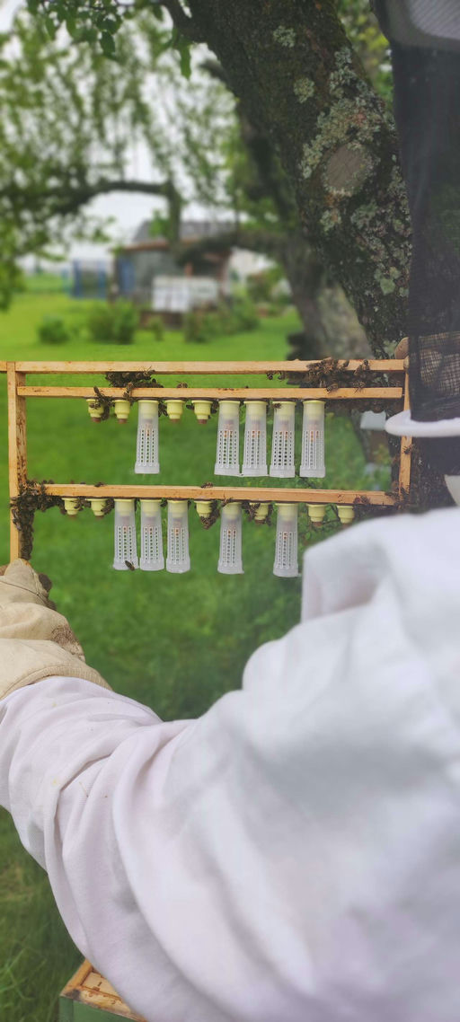 Trotz des nicht idealen Wetters wurde heute der Brutableger kontrolliert, um zu sehen, ob die Larven angenommen wurden. Was soll ich sagen, beim ersten Versuch überhaupt wurden 10 von 20 Larven angeno...