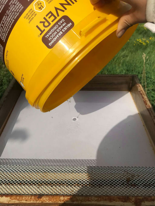 Nachdem die Ernte eingefahren war, wurden meine fleißigen Bienchen mit Zuckerwasser im Mischungsverhältnis 1:1 aufgefüttert, um für die bevorstehende Varroabehandlung gerüstet zu sein. Das neue Volk w...