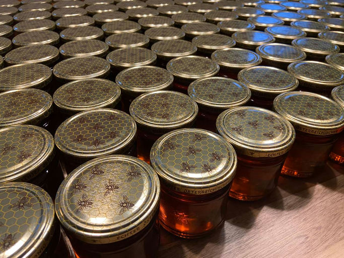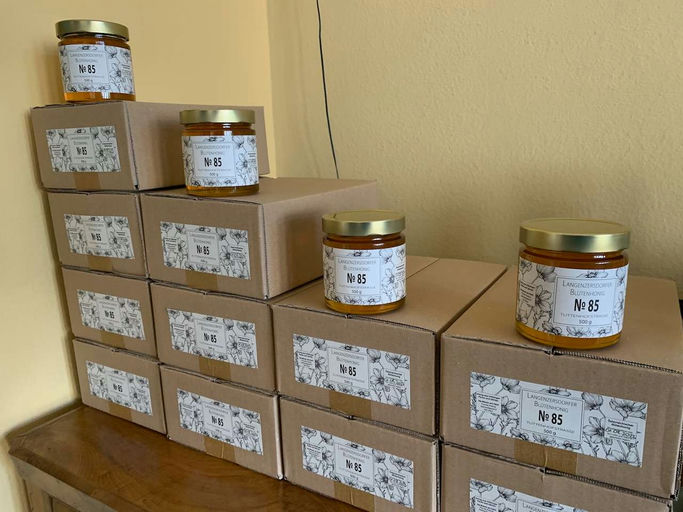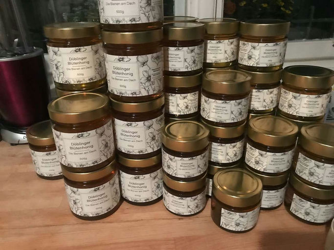Die Zeit bei den Bienen wird im September weniger, und man kann sich um die Vermarktung kümmern. Honig abfüllen, etikettieren und für den Verkauf vorbereiten sind auch schöne Arbeiten. Von cremigweiß ...