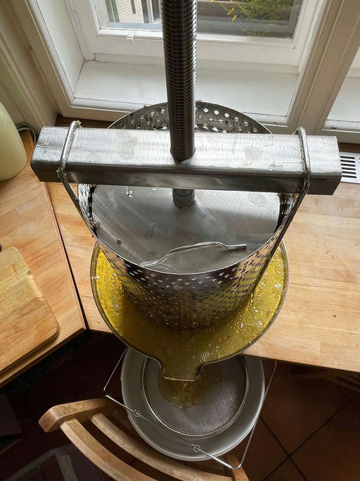 Dieses Jahr habe ich zum ersten Mal versucht, Honig auch zu pressen. Vorzugsweise habe ich den Honig aus den Jumborähmchen verwendet – aus den Beuten, in denen die Bienen mich scheinbar missverstanden...