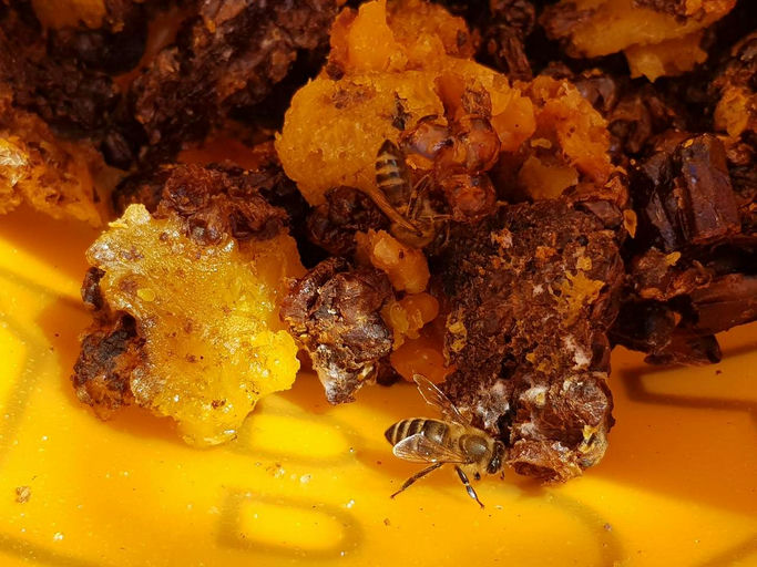 Ich habe das Entdeckelungswachs, das bisher beim Entdeckeln der Honigwaben angefallen ist, gesammelt und zu handlichen Portionen geschmolzen. Dazu wurde das Wachs vom Honig gereinigt und mittels Wasse...
