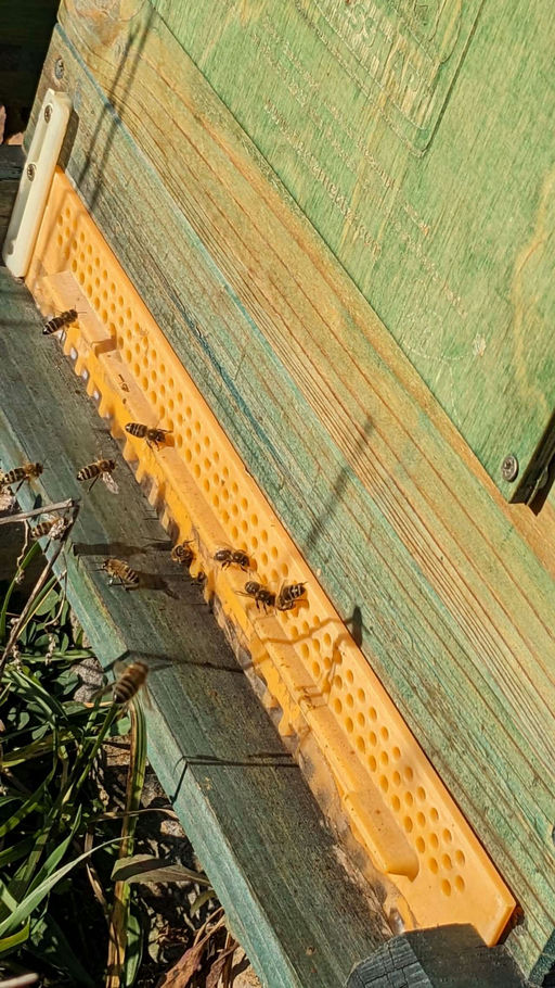 Im Oktober habe ich die Bienen ein letztes Mal kontrolliert. Damit es keine Futterräuberei zwischen den Bienenstöcken gibt, habe ich das Flugloch verkleinert; so haben die Wächterbienen es einfacher. ...