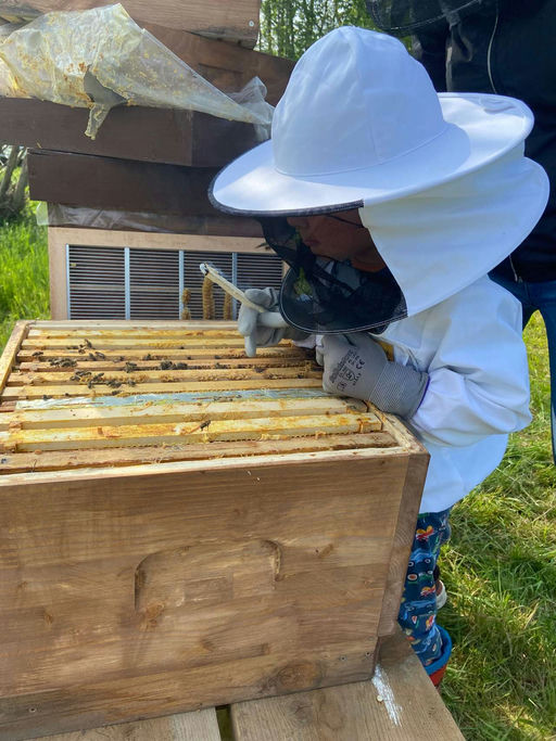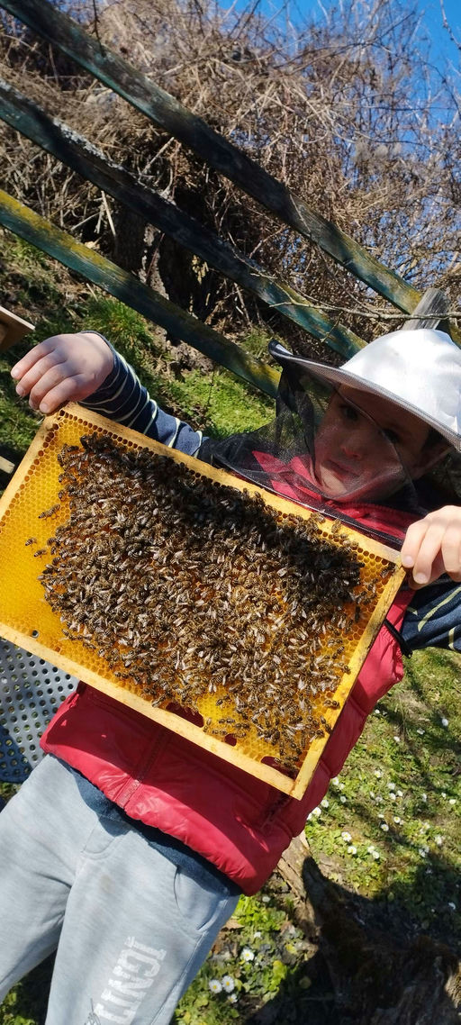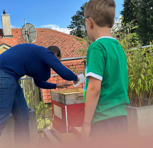 Der Honig, den die Bienen in den letzten Wochen gesammelt haben, kann jetzt geerntet werden. Wir nehmen den Bienen nicht den ganzen Honig weg, damit sie auch etwas haben. Nach dem Ernten wird das Volk...