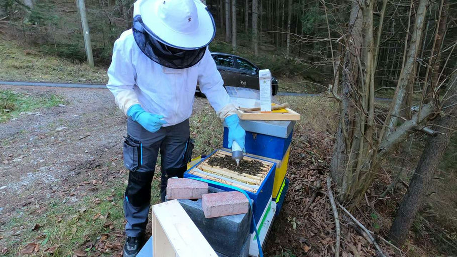 Nach der Fütterung werden die Bienen noch gegen die Varroa behandelt. Auf der Stockwindel war wenig Befall erkennbar. Ein gutes Zeichen. Deshalb wird jetzt noch mit Ameisensäure behandelt. Im Dezember...