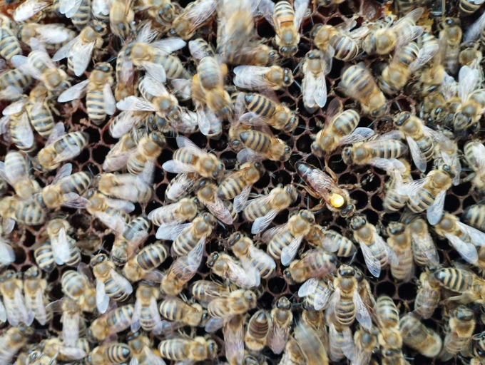 Die "Fressnapf-Bienen" haben sich vom Transport erholt und sammeln schon fleißig den ersten Nektar und Pollen! Sie entwickeln sich sehr gut. Die nächste Generation Bienen sind dann schon die "Winterbi...