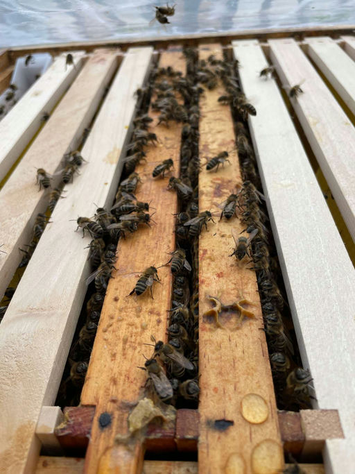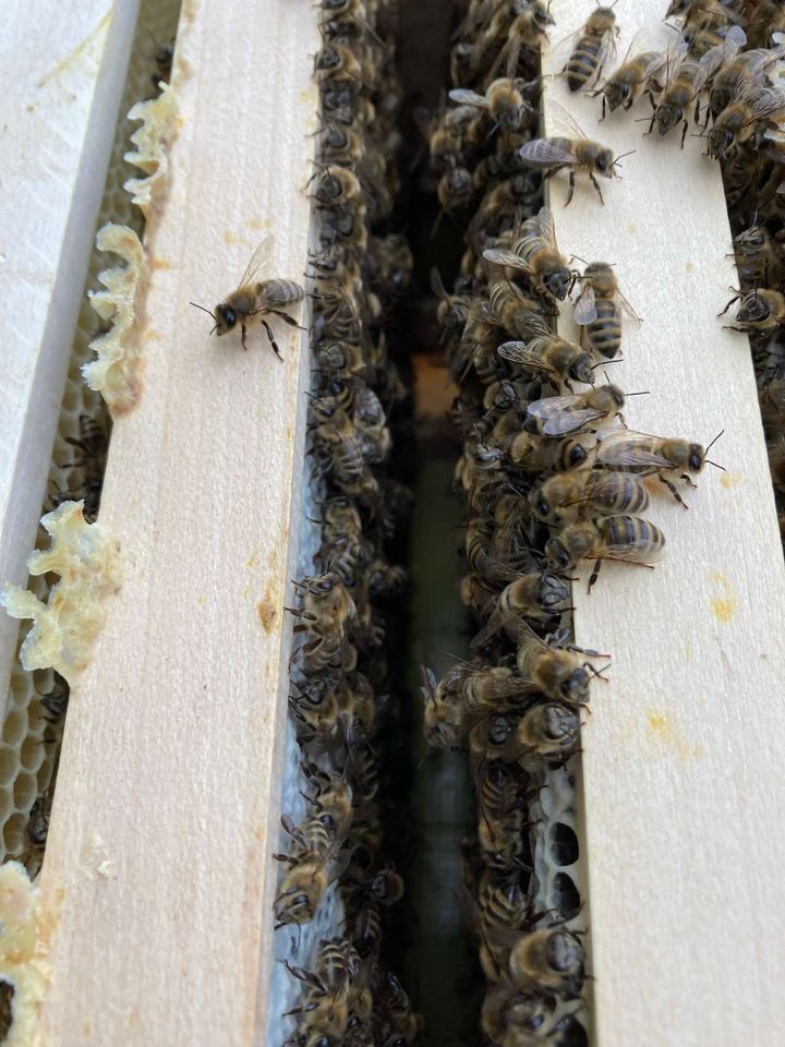 Nun haben sich die Damen bereits einige Wochen einleben können, und die Königin hat ein schönes Brutnest angelegt. Sie haben jetzt eine zweite Zarge bekommen und können diese ausbauen, bevor es dann a...