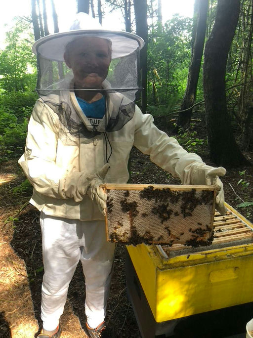 Auch wenn ich jetzt mein eigenes Bienenvolk habe, helfe ich fleißig weiter bei den anderen Völkern und bin überrascht, denn man lernt immer wieder Neues dazu. In dieser Beute haben wir einen Naturschw...