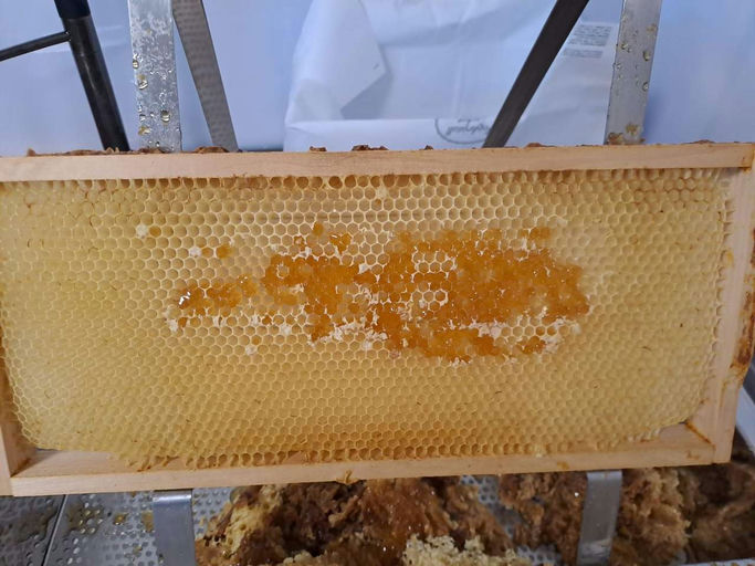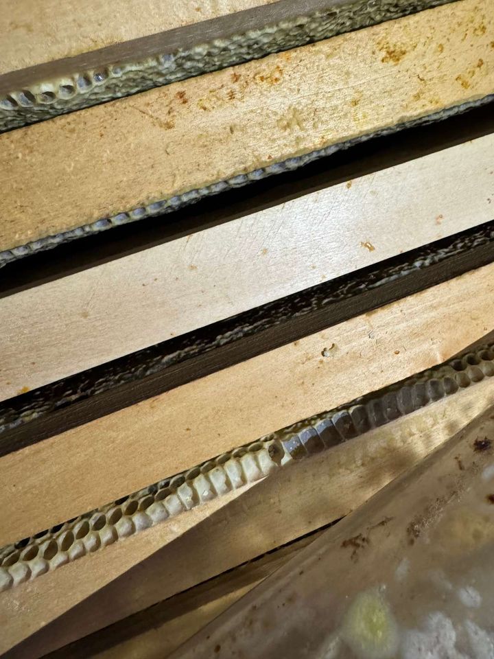 Im August stand das Abernten auf dem Programm. Die Ausbeute war leider sehr überschaubar, da die Völker in den Regenmonaten viel selbst wieder aufgefressen haben und kaum eine Wabe voll war. Die Ernte...