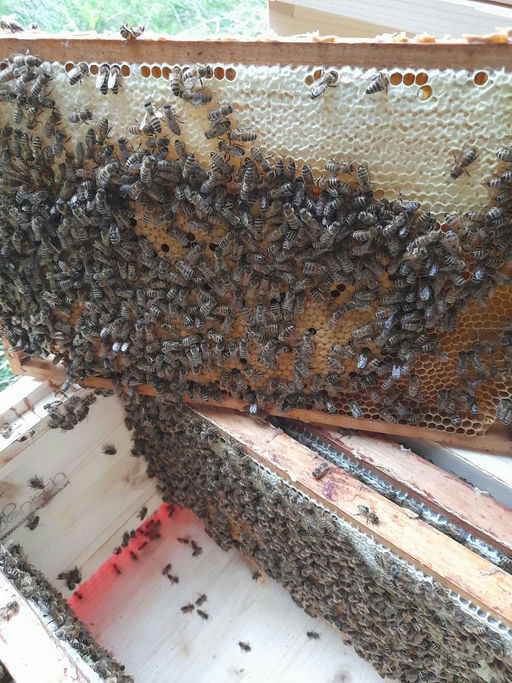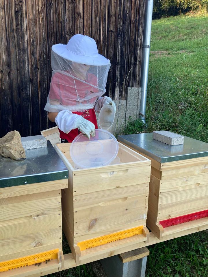 Die Bienenschwärme sind gut angekommen und werden auf einer Zarge gehalten und mit Flüssigfutter gefüttert, damit sie gut in den Herbst kommen. Trotz des regnerischen Mais sammeln die anderen Völker e...