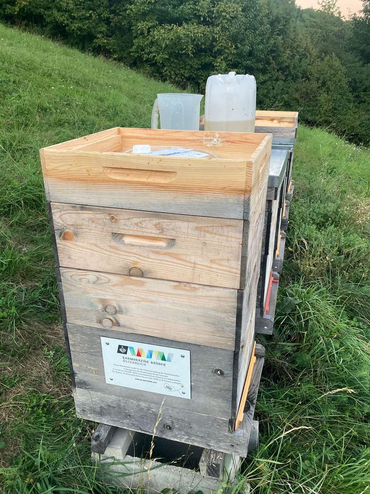 Nach der Honigernte werden die Völker für den Wintersitz nun aufgefüttert und gegen die Varroamilbe behandelt. Die noch warmen Sommertage lassen eine Behandlung mit Ameisensäure zu. Doch auch das Einb...