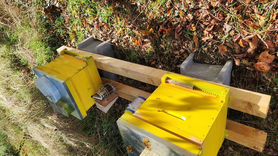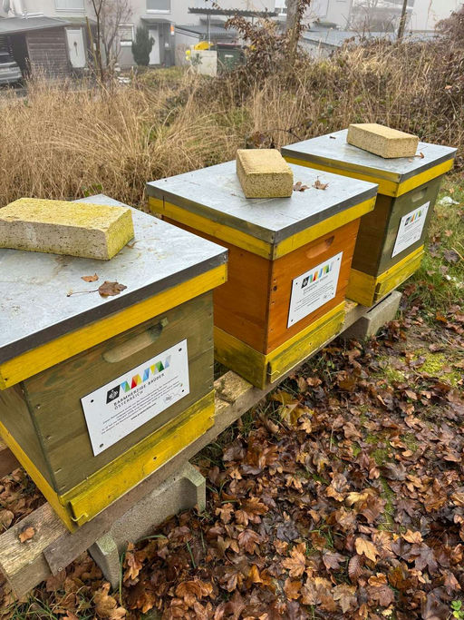 Leider musste ich bei meinem Besuch im November feststellen, dass wir zwei der Völker verloren haben. In den Beuten ganz links und ganz rechts waren keine Bienen mehr. Ich habe die Futterzargen abgese...