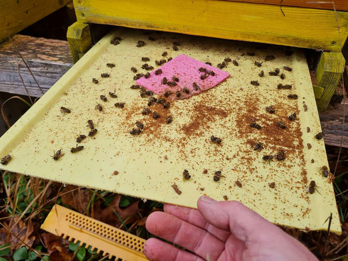 Es stand mal wieder eine Varroa-Kontrolle an. Zum Glück sieht es ganz gut aus, nur ein Volk hat mehr Totenfall. Das werden wir noch einmal kontrollieren, um zu sehen, ob das auf einem höheren Level bl...
