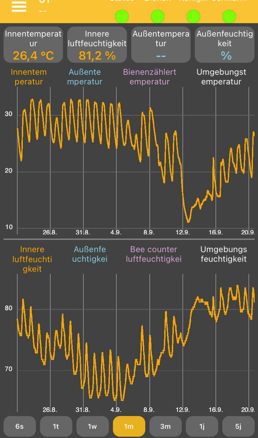 Im September wurde nochmals gründlich mit Zuckerwasser eingefüttert und überprüft, wie es den Bienen geht. In einem Bienenstock wurden die Daten von unserem Stockherz ausgelesen, das im Inneren des St...