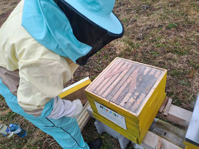 Am Standort Trahütten wurde im Februar die Oxalbehandlung der Bienenvölker durchgeführt. Dabei wird Oxalsäure in Pulverform verdampft, wodurch die Varroamilben effektiv abgetötet werden. Diese Behandl...