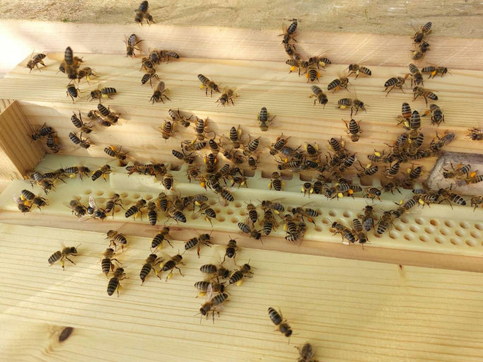 Ein kleiner Besuch bei den Bienen, um zu sehen, wie es ihnen geht. Sie haben die Sonnenstrahlen und das eher warme Wetter genutzt und fleißig Pollen gesammelt. In einigen der Völker war noch genug Fut...