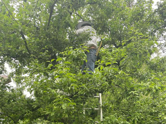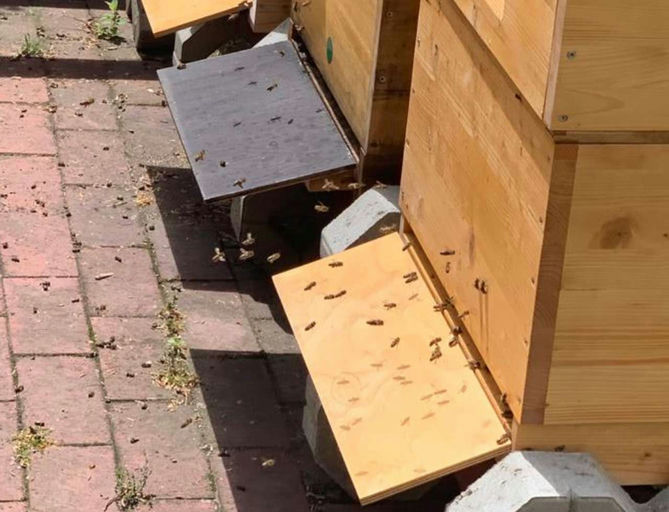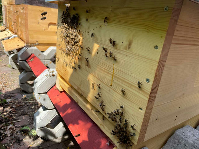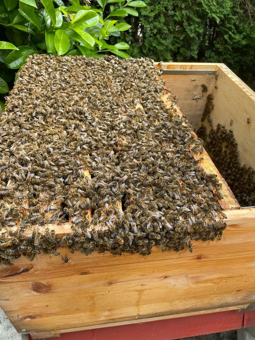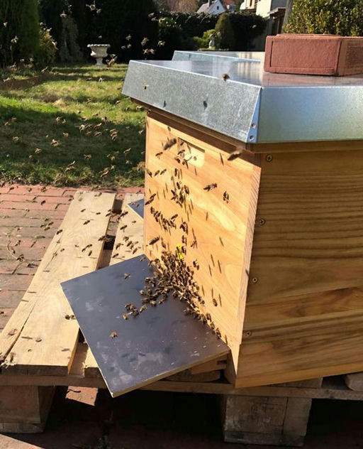 Die Bienen sind wohlbehalten angekommen und wurden noch am selben Tag in eine neue Beute umgesiedelt. Da sie mehr als 2 km von ihrer alten Heimat entfernt ihren neuen Standort bekommen haben, versuche...