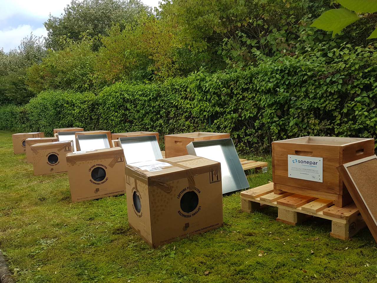 Am 19.09.2023 war es endlich soweit und die Bienen hielten Einzug bei der Firma Sonepar in Goslar eingehalten. Gut verstaut in großzügigen Kartons mit ausreichender Belüftung kamen Sie früh morgens an...