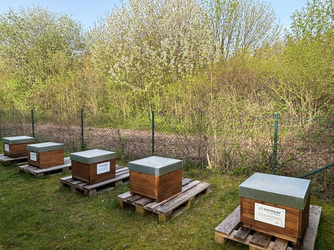 Aus diesem Grund gehen wir mit unseren Partnern der Sonepar-Markenoffensive gerne mit gutem Beispiel voran und unterstützen mit eigenen Firmenbienen die Bienenschutz-Initiative von Hektar Nektar.