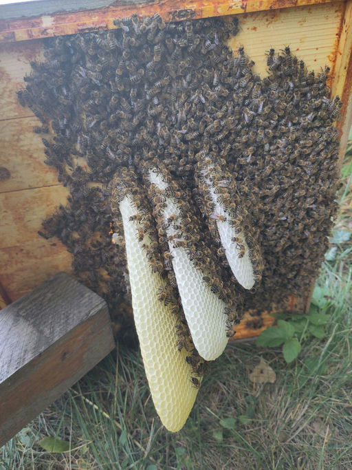 Es ist immer wieder erstaunlich, wie viel Honigbienen in nur einem Monat leisten können. Die Bienen haben schon einige Kilos eingetragen und einige Waben sind schon relativ voll! Leider ist ein Volk i...