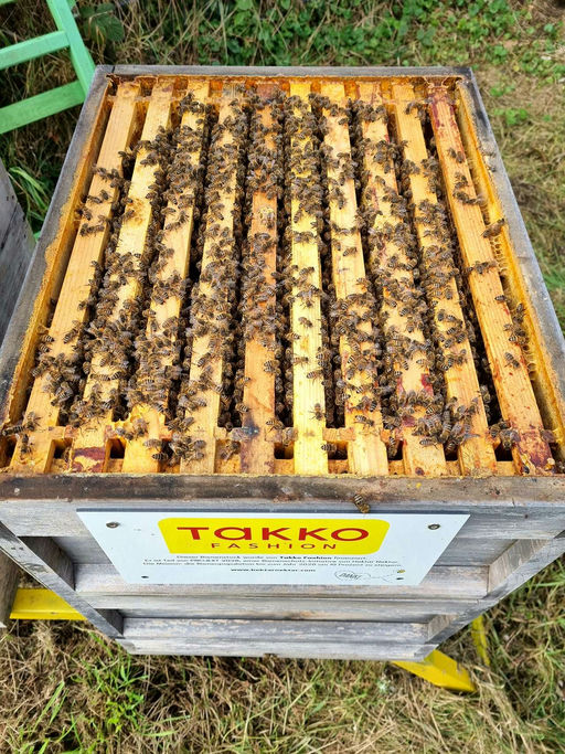 Die Takko-Bienen haben gut eingetragen. Überall ist Brut, und es gibt auch noch genügend Futter für den Winter. Bald wird der Honig abgefüllt. Jetzt tragen die Bienen noch Pollen und Futter ein. Die T...