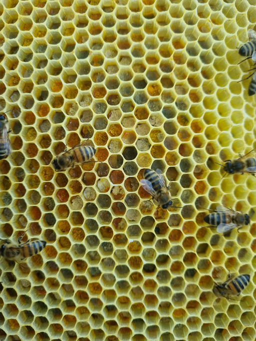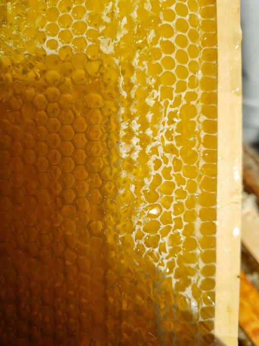 Aufgrund der verregneten letzten Wochen findet die Honigernte Anfang August statt. Die Bienen haben sich erholt, und die Beuten sind gut mit Bienen gefüllt. Sie tragen fleißig Nektar und Pollen ein. D...