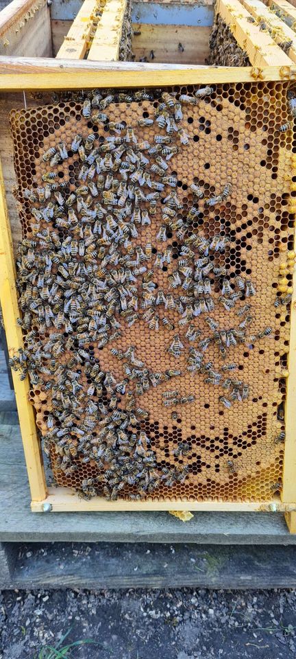 Hallo zusammen, im März habe ich meine Völker geschiedet, das heißt, dass links und rechts von den Waben jeweils ein Trenner geschoben wird. Dadurch bleibt das Brutnest schön konzentriert und kompakt...