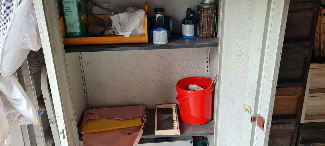 Nach einer kleinen Durchsicht werden wir die Honigräume auf das Volk setzen. Zwischen den Honigraum und den Brutraum wird ein Gitter gelegt, damit die Königin nicht in den Honigraum gelangt. Das soll ...