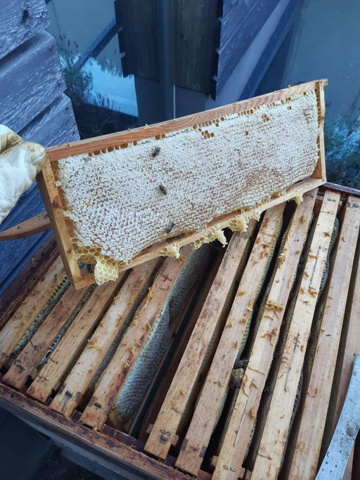 Diesen Monat ernten wir unseren Frühlingsblütenhonig, den die Bienen von März bis Mai gesammelt haben. Bevor wir mit der Ernte beginnen, mache ich zunächst eine Qualitätsprobe. Wir entnehmen mehrere k...