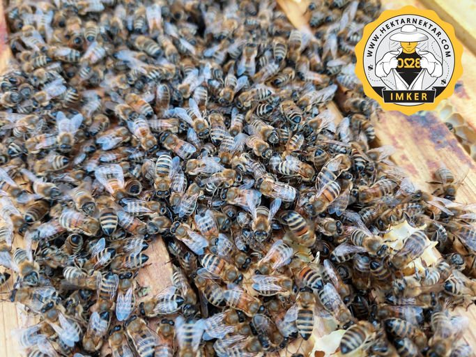 Aus beiden Weiselzellen sind erfolgreich die neuen Königinnen geschlüpft, und diese sind schon fleißig am Stiften, also am Eierlegen in die Zellen. Das TELUS-Volk hat sogar schon angefangen, wieder re...