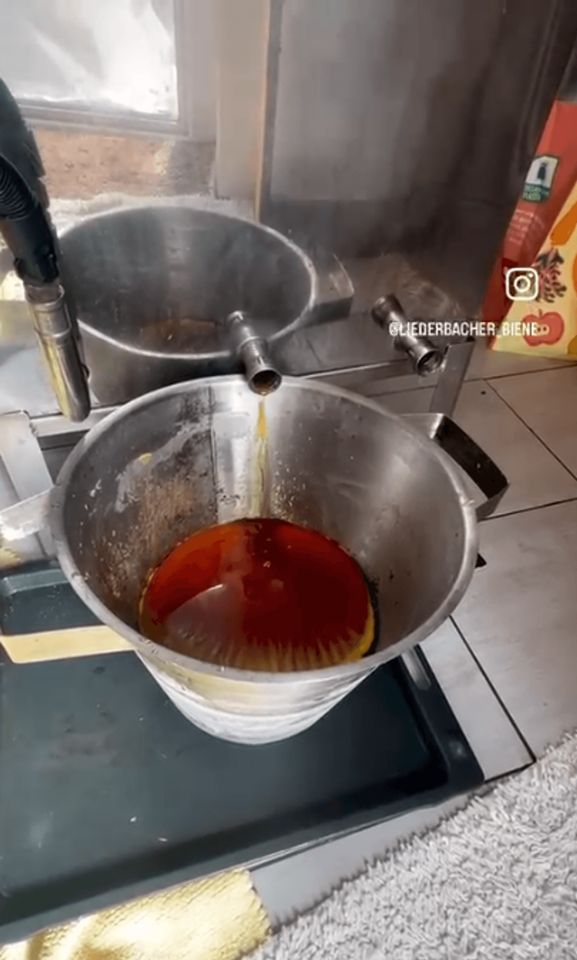 Alte Waben möchten wir nicht mit in den Winter nehmen. Diese wurden gegen neue, saubere ausgetauscht, und die alten, braunen Waben werden im Dampfwachsschmelzer eingeschmolzen. Das Wachs wird nach ein...