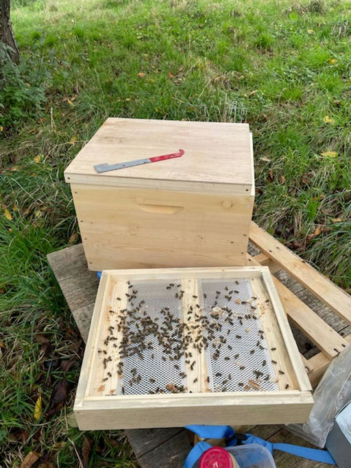 Wie ich bereits berichtet hatte, habe ich Anfang September einen Bienenableger mit vier Waben erhalten, die leider nicht voll mit Bienen besetzt waren. Dann war die Königin nach dem Einsetzen abhanden...