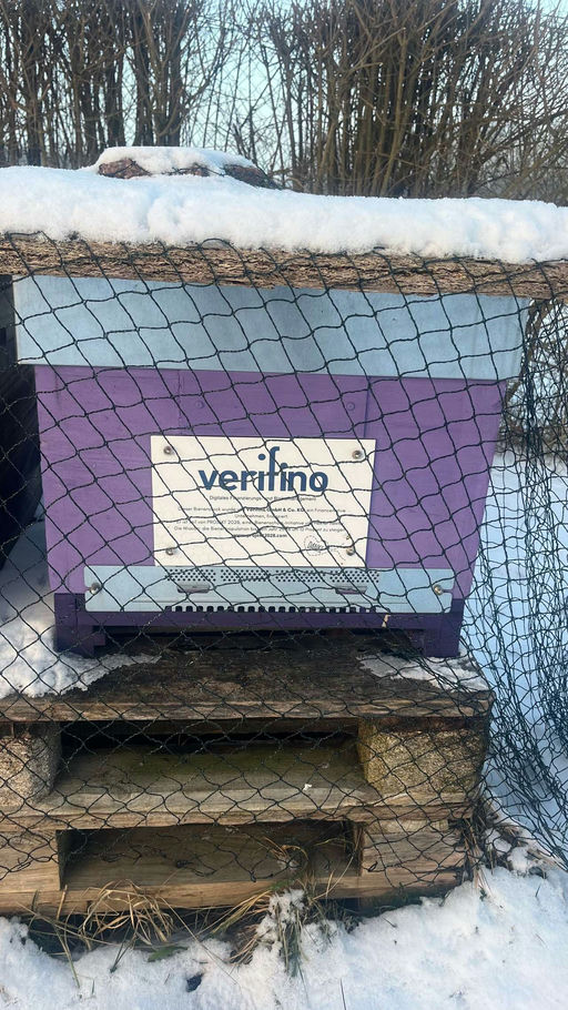 **Winterruhe bei den Verifino-Bienen – Kontrolle ohne Störung** Die beiden Bienenvölker der Firma Verifino sitzen im tiefsten Winter eng in ihrer Wintertraube, um sich gegenseitig zu wärmen. Ich stör...