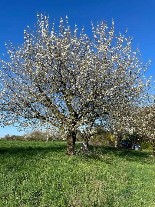 Es sieht so schön aus auf der kleinen Streuobstwiese mit den Kirschbäumen. Ich freue mich schon sehr darauf, die Bienen auf den Kirschblüten sitzen und umherfliegen zu sehen. Leider hat es mein Ablege...
