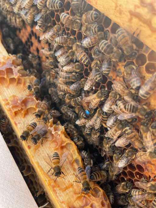 Das Bienenvolk hat sich tatsächlich noch eine neue Königin nachgezogen, die auch zügig damit begonnen hat, Brut anzulegen. Der Ableger ist noch klein, nimmt das Winterfutter aber gut an und ist fit. I...