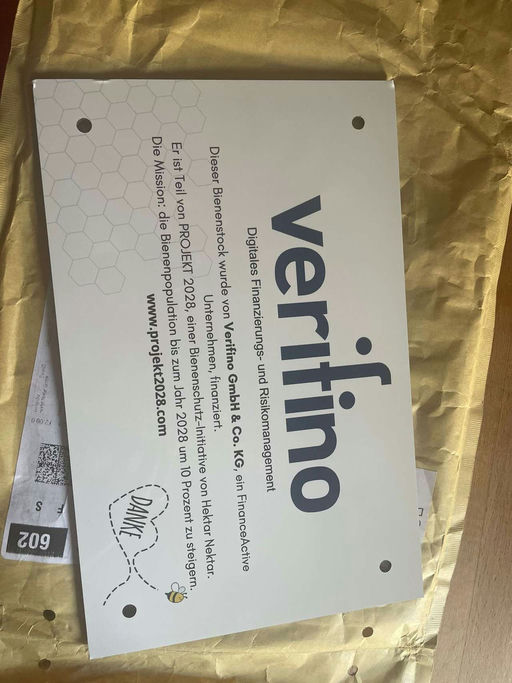 Heute kam das schöne Schild von Verifino – dankeschön! Wir werden es in den nächsten Tagen an unserer Beute anbringen. Inzwischen hatte ich auch bereits Kontakt mit dem Team von Verifino – wir haben ü...