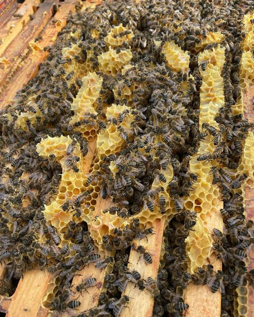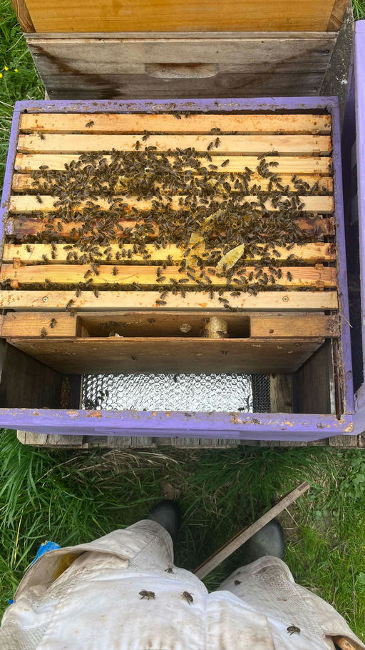 Es war kein einfacher Monat für die Bienen. Obst und Raps standen in voller Blüte, aber die Bienen konnten aufgrund der Kälte nicht so viel sammeln wie sonst. Die Königin hat viel gebrütet, und das Vo...