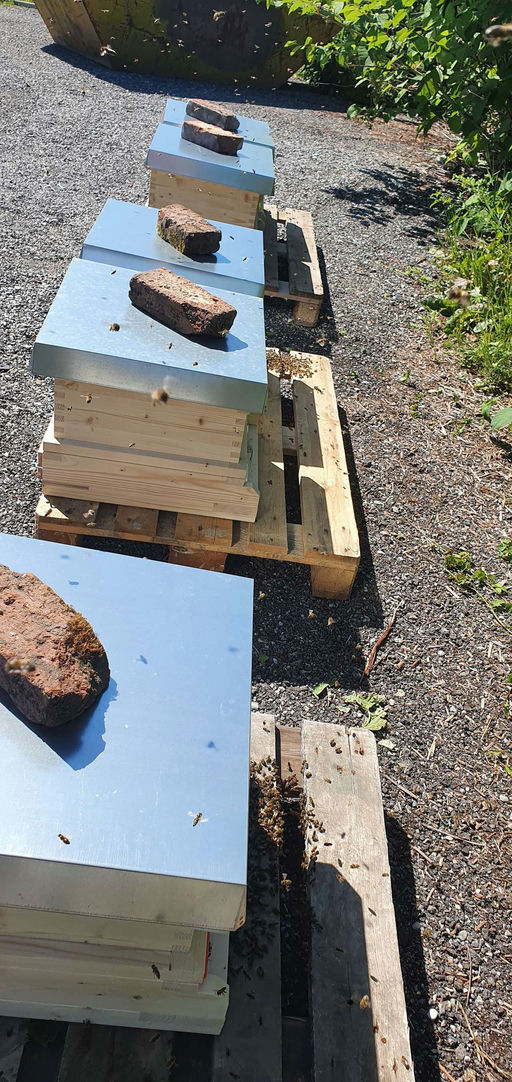 Alle fünf Völker haben sich insgesamt gut eingeflogen, den Königinnen geht es gut und sie legen fleißig Eier. Sie tragen nun auch Futter ein, nachdem sie am Anfang jeweils einen Liter Zuckerwasser bek...