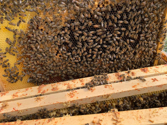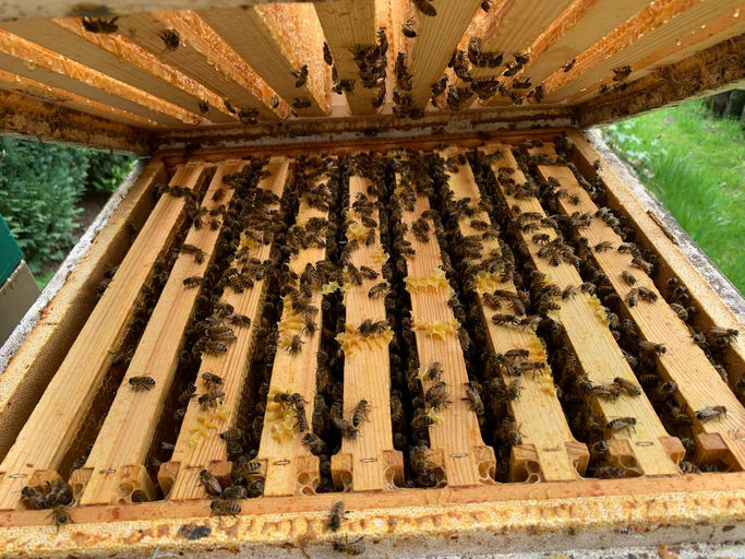 Beim Aufsetzen der Honigräume schauen wir kurz die Völker durch. Ist die Königin noch da? Legt sie Eier? Gibt es noch genug Futtervorräte in den Waben? Wird schon Pollen eingetragen, der jetzt für die...